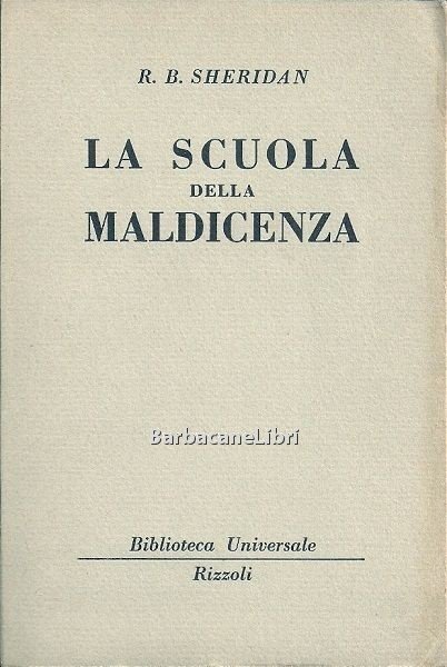 Intransigente fustigatore dei costumi (altrui e propri), Sheridan, come poi Shaw e Wilde, da buon irlandese ama colpire anzitutto la società inglese nella quale vive. E il suo spirito è così vivo e scintillante, che gli inglesi ne sono sempre ammiratori fedeli, ma un po' timorosi.