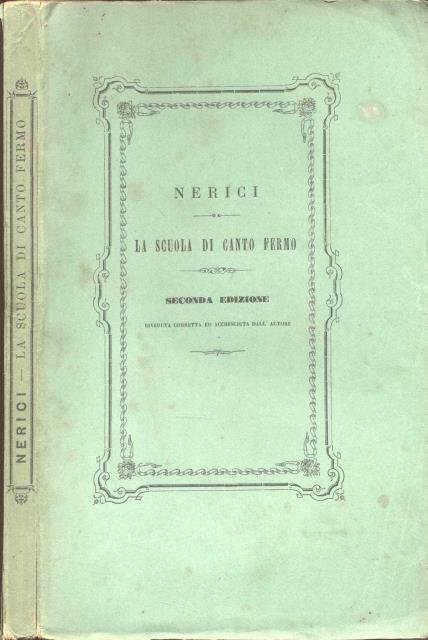 2ª edizione, accresciuta e corretta dall'Autore. Cm.23x14,2. Pg.260. Brossura editoriale. Gaetano Nerici (Sorbano del Vescovo, 1831-1885) fu compositore, Maestro di Musica e di Canto ecclesiastico e socio dell'Accademia Lucchese. Codice libreria 149499.