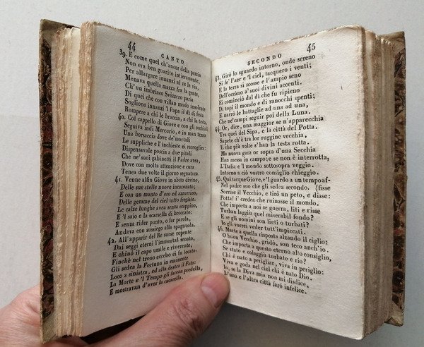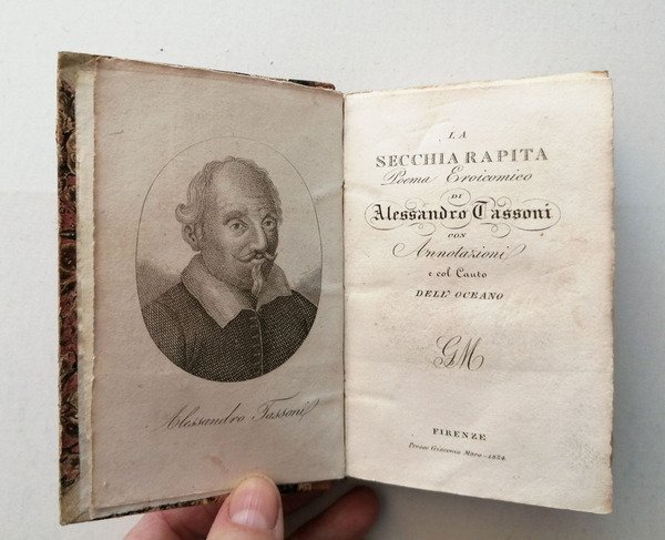formato 12X8. Rilegatura coeva marmorizzata con dorso in pelle e scritte in oro. Con un ritratto di Tassoni inciso al controfrontespizio. Introdotto da Notizie intorno alla vita di Alessandro Tassoni del Cavaliere Girolamo Tiraboschi. Bella copia