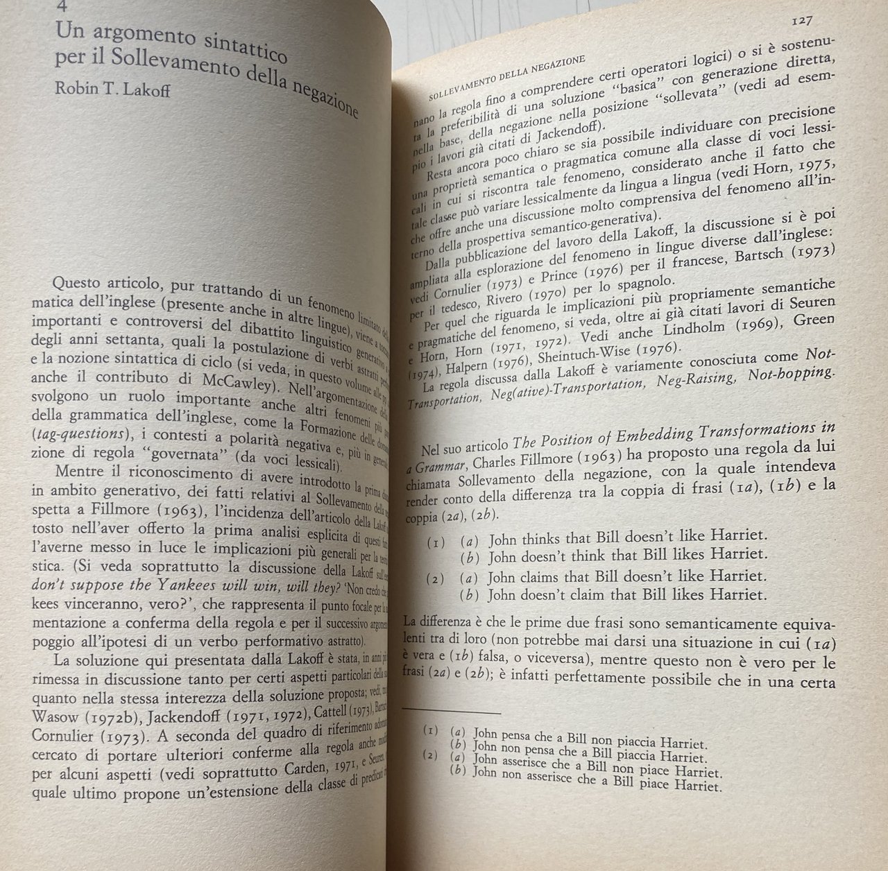 4 Un argomento sintattico per il Sollevamento della negazione, Robin T. Lakoff