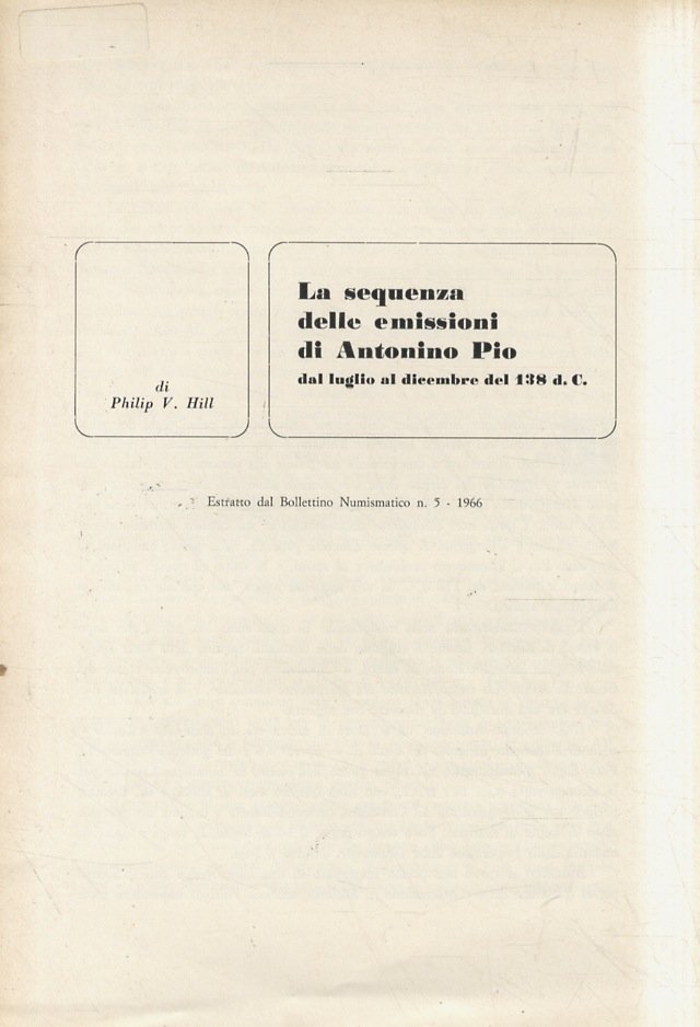 La sequenza delle emissioni di Antonino Pio dal luglio al dicembre del 138 d.C.