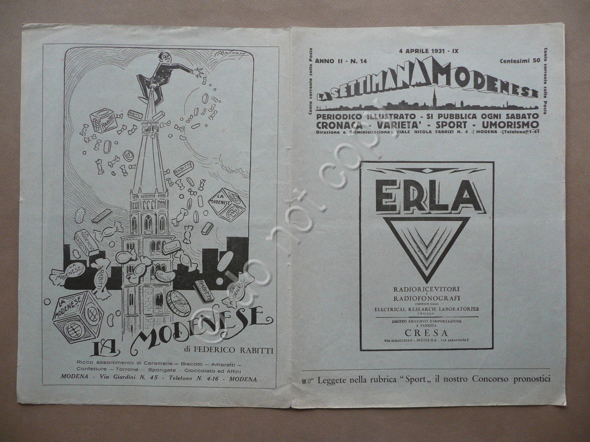 La Settimana Modenese Mille Miglia Alfa Romeo Auto Severi 1931 Anno II N.14