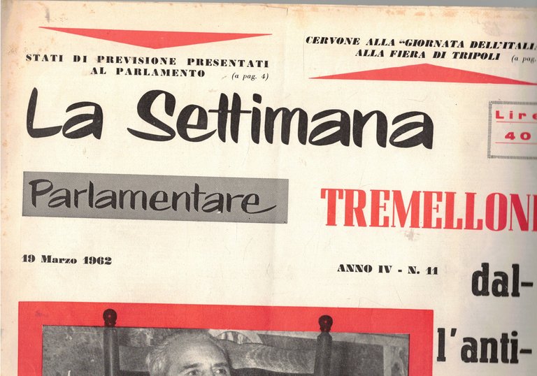 La settimana parlamentare, disponiamo dei n° 11, 12, 13 del marzo-aprile 1962.