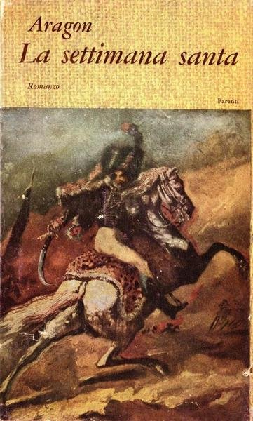 La settimana santa, seconda edizione febbraio 1960, pp 761, formato 14 x 22,5. Titolo dell'opera originale Le semaine sainte, traduzione di Ettore Capriolo. Sul cofanetto: Theodore Gericault, Officer de chasseurs a cheval chargeant, particolare, Museo de Rouen.Nel volume sono incollati un articolo di giornale, una foto a colori di Aragon e una foto tratta da un giornale dello scrittore a 76 anni. Sciolto un ritaglio a firma di Gianni Pozzi dell'incontro con Louis Aragon, venuto a Firenze per visitare la mostra dell'amico Andrè Masson<BR><BR>