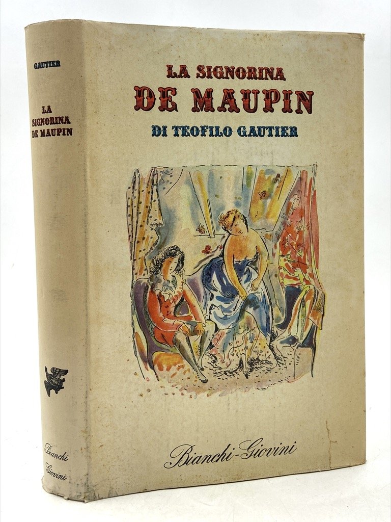 Tela editoriale con sovraccoperta illustrata, cm 22 x 14.5, pp XIV 387 (3), numerose illustrazioni in nero. Prefazione di Ugo Dettore. Collana Aretusa, Narrativa Classica Italiana e Straniera. Buono stato, strappo alla base del piatto anteriore della sovraccoperta, ultime pagine ancora intonse. Prima edizione, stampata il 10 ottobre 1945 dalla Stamperia Capriolo e Massimino di Milano, di questa traduzione integrale di «Mademoiselle de Maupin», romanzo epistolare di Teophile Gautier del 1835. La versione italiana è curata da Torquato Padovani ed è illustrata da Maria Calati. Ugo Dettore (1910-1992), scrittore e traduttore, collaborò con Bompiani presso cui concepì il progetto del grande Dizionario letterario e in quella sede conobbe la moglie Bianca Ugo (1910-1982), traduttrice dal tedesco e l'inglese molto attiva negli anni '30 per Corticelli, Corbaccio, Mondadori, Elettra e lo stesso Bompiani. Sposati nel 1938 Dettore e Ugo fondarono nel 1942 una propria casa editrice intitolandola ad Aurelio Bianchi-Giovini, pubblicista anticlericale dell'Ottocento e nonno di Dettore. La Casa Editrice Bianchi-Giovini fu improntata al recupero di classici e alla traduzione di letterature straniere, patendo non pochi fastidi da parte del regime che spesso non concesse i nulla osta di pubblicazione e addirittura ordinò il sequestro e macero del Satyricon pubblicato nel 1943. La coppia si avvalse peraltro della collaborazione di intellettuali antifascisti quali Ada Prospero Gobetti e Massimo Mila, e nel 1944 fu brevemente incarcerata dai tedeschi a San Vittore. L'ambizioso progetto della Bianchi-Giovini partì con due collane di Saggistica letteraria («Europa») e letteratura («Aretusa»), e con l'Enciclopedia della Donna curata da Bianca Ugo; oltre a Dettore e Ugo, e ai succitati Prospero e Mila, tra i collaboratori della casa editrice ricordiamo Carlo Cordié, Mario Praz, Carlo Bo, Salvatore Fiume. L'ambizioso progetto editoriale, nonostante la pubblicazione nel dopoguerra di molti dei titoli bloccati dal regime, rimase largamente incompiuto e nella collezione Aretusa videro la luce solo 15 delle 150 opere previste. La separazione della coppia e le difficoltà economiche rallentarono molto i lavori; negli anni '50 Ugo Dettore iniziò a collaborare con Garzanti e la casa editrice Bianchi-Giovini, ormai proprietà della sola Bianca Ugo, languì fino a chiudere i battenti nel 1958. La curatissima collezione Aretusa resta una preziosa testimonianza di una delle più interessanti avventure editoriali italiane del '900.