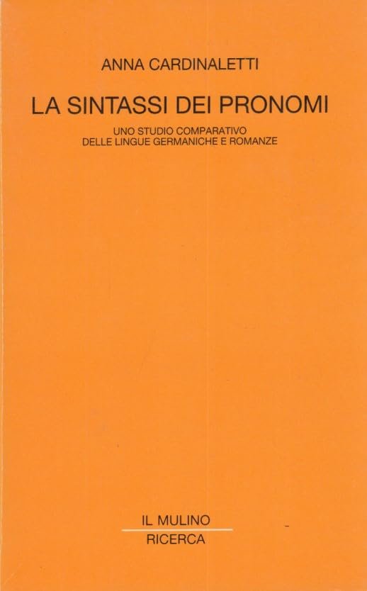 Cardinaletti, Anna La sintassi dei pronomi. Uno studio comparativo delle lingue germaniche e romanze. , Il Mulino 1994 italiano, 272 Edizione Il Mulino - Ricerca - anno 1994 - in COPERTINA FLESSIBILE con alette interne neutre e rivestita di foderina trasaperente applicata a protezione e quindi molto ben conservata. Pagine all'interno in ottime condizioni. Disponibilità immediata e spedizione con corriere tracciata.