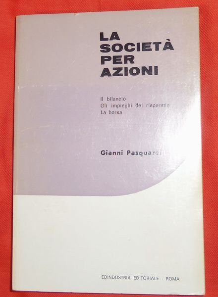[Economia](cm 19) brossura editoriale. -pp.198. n.t alcune tabelle con vari indici patrimoniali esemplificativi. L'Autore accompagna il lettore,nel mondo delle societ‡, nei motivi per il quale sono sorti, esul loro funzionamento. Volume pubblicato per Italsider, in sostituzione della strenna annuale ai dipendenti fu fondata una collana a disposizione dei dipendenti. Minimi ed usuali segni del tempo alla brossura e ai tagli altrimenti perfetto. [n44]