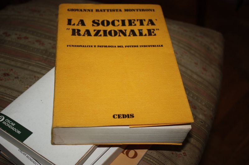 Codice 3519, LA SOCIETA' RAZIONALE GIOVANNI BATTISTA MONTIRONI CEDIS 1974, La società ”razionale”: funzionalità e patologia del potere industriale., Autore: MONTIRONI, Giovanni Battista., Editore: CEDIS, Roma., Anno: 1974., Stato di conservazione: Buono, ordinari segni d’uso e del tempo, piccolo segno a penna sul piatto superiore., Descrizione fisica: 529 p., 21 cm, bross