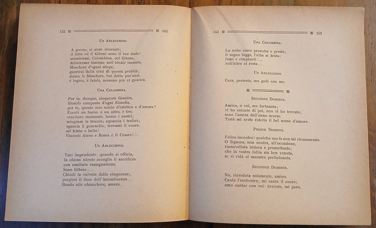 Cm 19,5 x 16,2, brossura editoriale con titoli in rosso, pp. 359,(1), con una figura al frontespizio ed una tavola in bianco e nero su carta patinata fuori testo. Prima edizione, stampata presso la Tipografia G. Botta di Varazze. Dedica autografa di Gian Pietro Lucini al recto del foglio di guardia anteriore. Esemplare intonso al taglio di testa, ben conservato, con naturale ingiallimento e lieve brunitura marginale della carta.