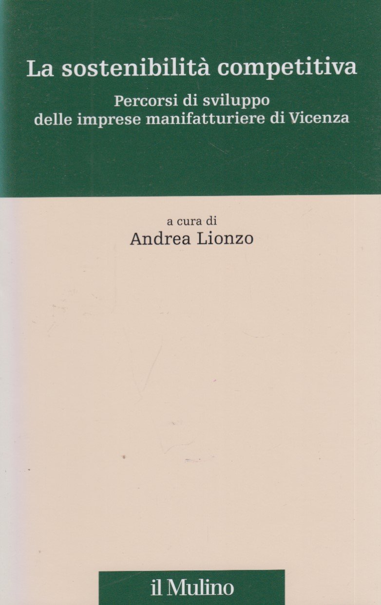 Lionzo Andrea (a cura di): La sostenibilità competitiva. Percorsi di sviluppo delle imprese manifatturiere di Vicenza. Il Mulino, 2010In-8 (cm 21,3x13,5), pp. 446, brossura edit. (con alette). Collana Percorsi. Tracce di lettere all'antiporta. Molto buono