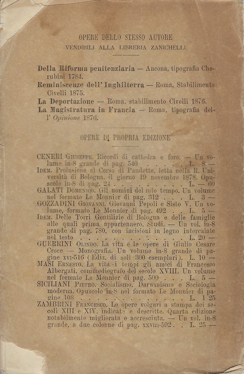 Brossura, assente il piatto anteriore, presenza di strappi al piatto posteriore.