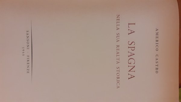 Americo Castro - La Spagna nella sua realtà storica - 1955. Sansoni, Firenze. Tela con titoli e filetti dorati al dorso; cm 19,5x28; pagg. 639;124 illustrazioni b/n fuori testo su carta patinata