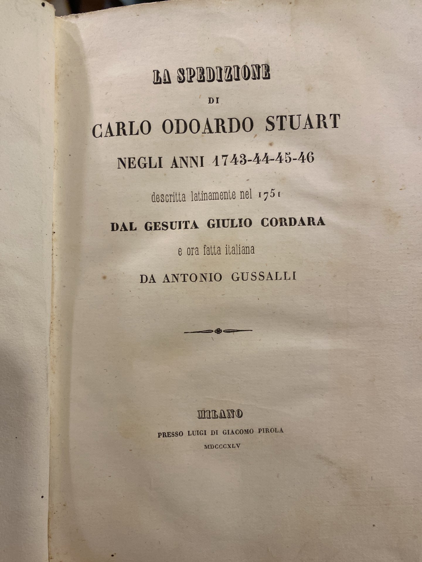 La spedizione di Carlo Odoardo Stuart negli anni 1743-44-45-46 descritta latinamente nel 1751 dal gesuita Giulio Cordara e ora fatta italiana da Antonio Gussalli