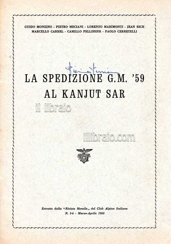 in 8°; pp. 32 + 4 tavv. (ill. in bn.); br. Estratto dalla rivista mensile del Club Alpino Italiano, N° 3-4 marzo-aprile 1960. Scritti di G. Monzino, P. Meciani, L. Marimonti, J. Rich, M. Carrel, C. Pellissier e P. Cerretelli