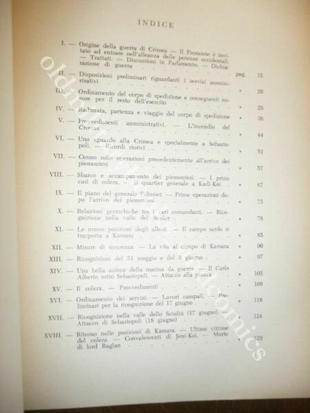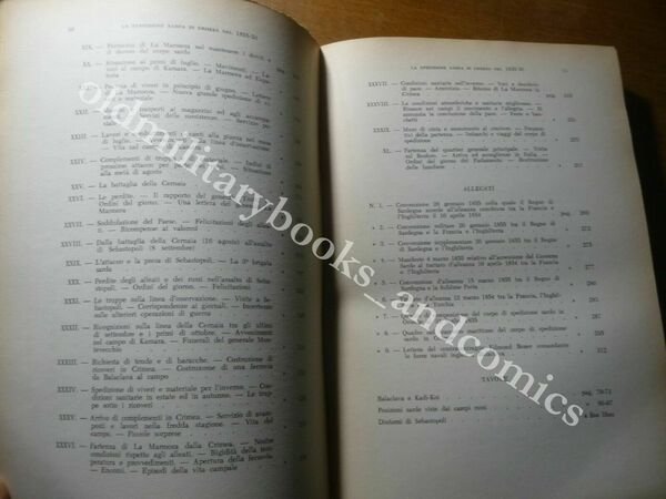 DESCRIZIONE: Stato Maggiore dell'Esercito Ufficio Storico Roma 1956 br. ed. pp. 311 con 3 tavv. b/n f.t. di cui rip. a fine vol. in 8°. Narrazione compilata con la scorta dei documenti esistenti nell'archivio del corpo di Stato Maggiore. Origine della guerra di Crimea; Sbarco e accampamento dei piemontesi; Fermezza di Lamarmora nel mantenere i diritti e il decoro del corpo sardo; La battaglia della Cernaia; L'attacco e la presa di Sebastopoli; etc. CONDIZIONI: Ottime. PESO / WEIGHT: 600 gr. without package