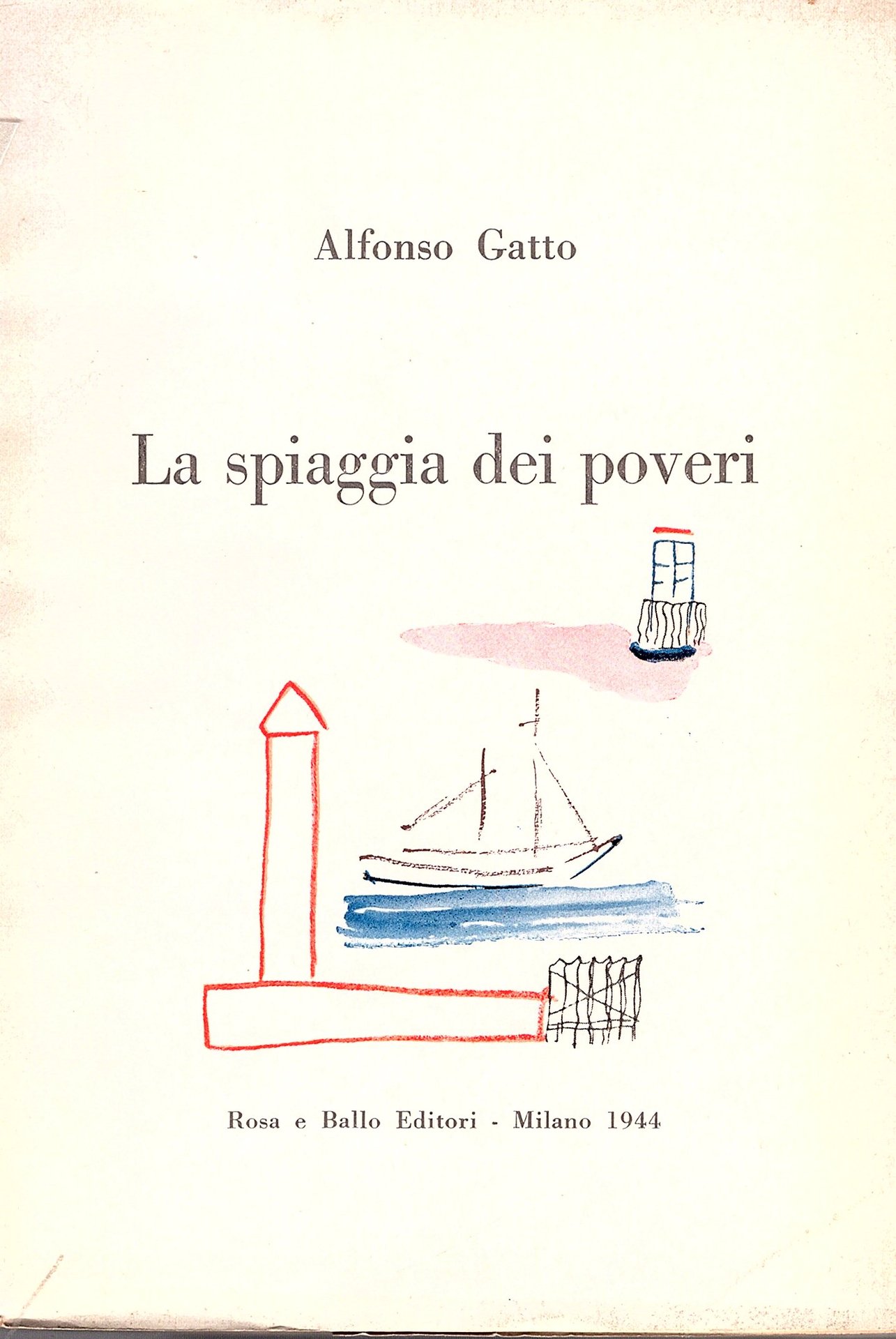 In-16° (182x145mm), pp. (10), 123, (11), brossura editoriale con sovraccoperta con illustrazione a colori di Gatto stesso. Qualche menda alla sovracoperta ma bell' essmplare entro velina. Prima edizione. Spaducci, p. 139. Gambetti / Vezzosi, p. 378: 'Non comune e piuttosto ricercato'.