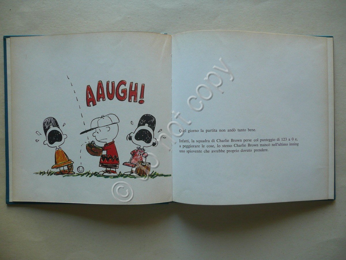 Charles M. Shultz, La squadra di Charlie Brown Milano Libri Edizioni, Milano 1967, cm 21,5x21,5, pp. non num. (pp. 48) con numerosissime ill. a col. nel testo e a p.p., tutto cartonato ed. ill. a colori. Condizioni di conservazione Esemplare in buone condizioni con tracce d'uso, coperta con qualche piccolo leggero segnetto a penna, angoli dei piatti e cuffie con minime trascurabili abrasioni. Interni molto buoni, pressoché ottimi. Prima edizione (novembre 1967). SETT78.L6870 N