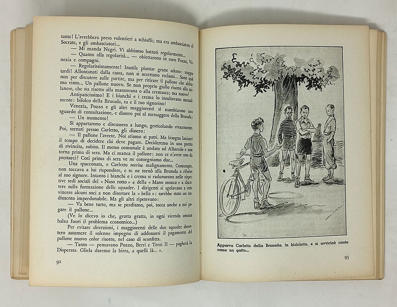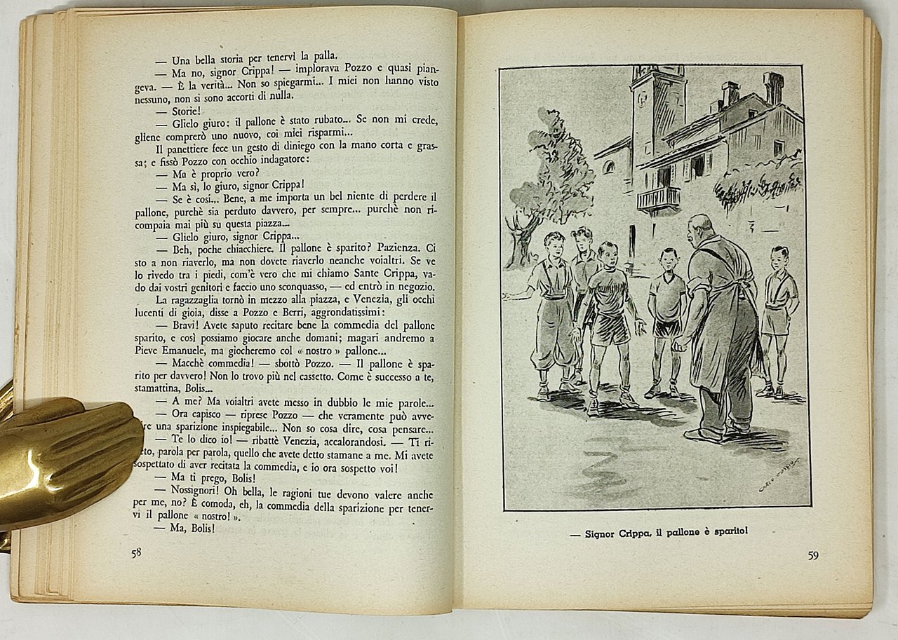 Romanzo illustrato da Carlo Cossio (noto disegnatore e fumettista italiano). Data non indicata ma su Wikipedia risulta essere stato stampato nel 1945. Pagine: 230 + [2]. Formato: 15,5 x 21,5 cm circa. Stato di conservazione: piccolo tagleitto sul margine inferiore del dorso (in corrispondenza con la linea d'attaccatura alla copertina anteriore), allentamento dalla rilegatura del primo fascicolo (fino a pagina 14) che è unito al corpo del volume solo più attraverso uno dei tre cordoncini di spago, piccole, sporadiche e marginali macchioline marroni, qualche minuscolo e assolutamente non deturpante taglietto sul margine di qualche pagina ma, nel complesso, un buon esemplare. Privo di firme d'appartenneza, scritte o segni nel testo.Brossura editoriale con copertina flessibile illustrata a colori con un disegno di Carlo Cossio. L'autore del volume (Pacifico Fiori) fu un importante giornalista e scrittore italiano che collaborò con numerosi e famosi settimanali italiani tra cui Barbapedana, Cacciatore Italiano (di cui fu anche direttore), Guerin Meschino, il Corriere della Sera, La Domenica del Corriere, il Corriere dei Piccoli e Fantasie d'Italia. Opera rara di assai difficile reperimento. Da collezione.