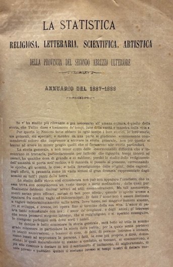 La statistica religiosa, letteraria, scientifica, artistica della Provincia del secondo Abruzzo ulteriore. Annuario del 1887-1888