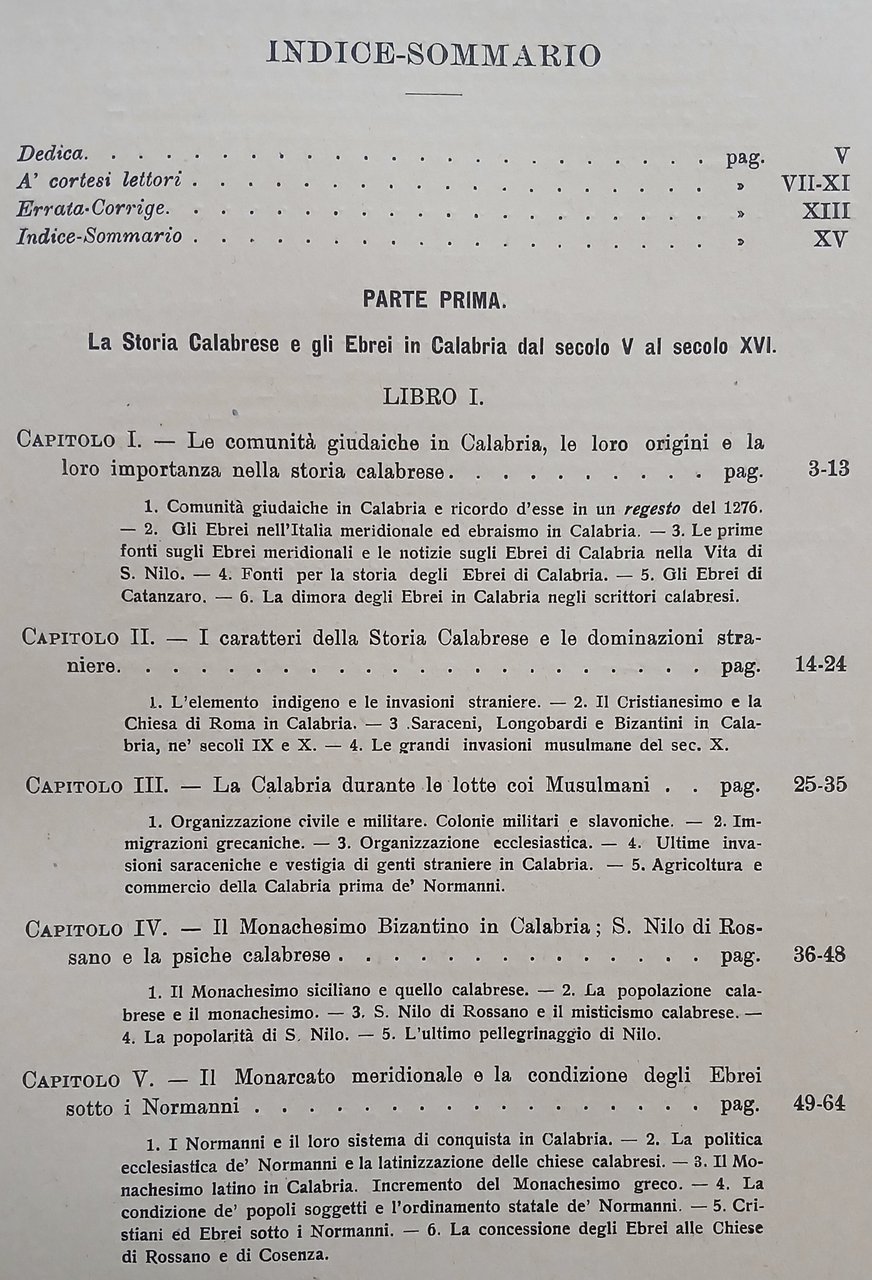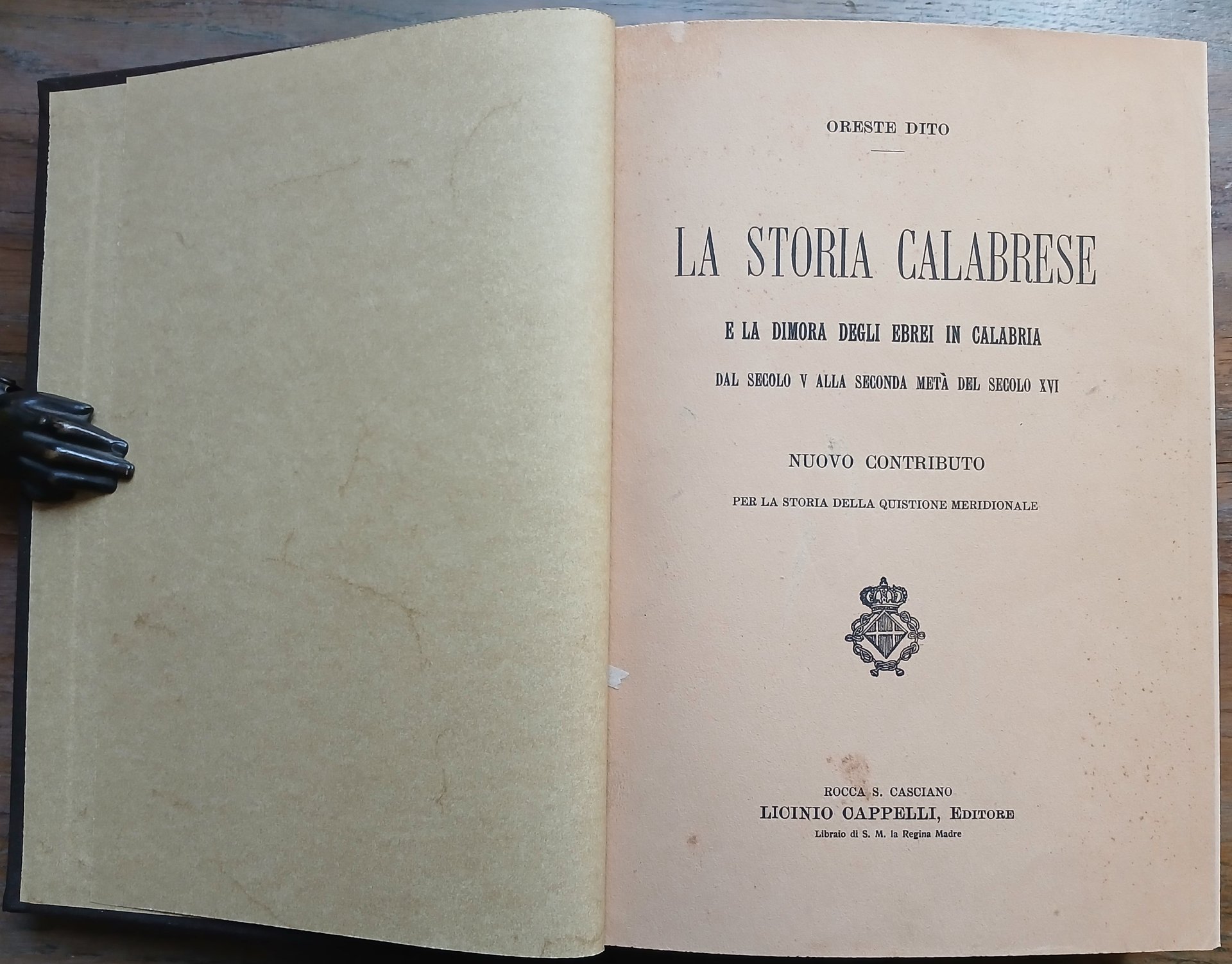La Storia Calabrese e la dimora degli Ebrei in Calabria, dal secolo V alla seconda metà del secolo XVI. Nuovo contributo per la storia della questione meridionale.