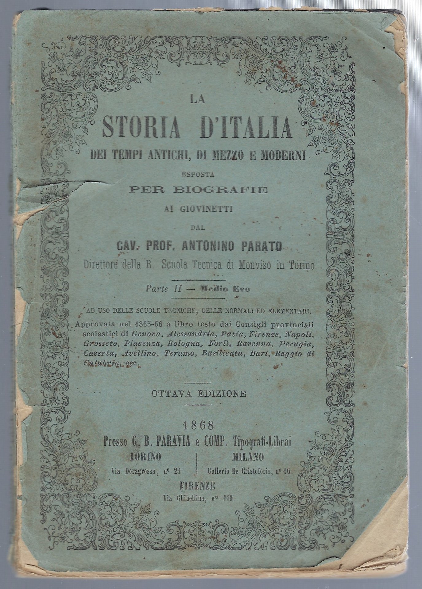 La Storia d'Italia dei tempi antichi, di mezzo e moderni, esposta per biografie ai giovinetti dal Cav. Prof. Antonino Parato, direttore della R. Scuola Tecnica di Monviso in Torino. Parte II - Medioevo.