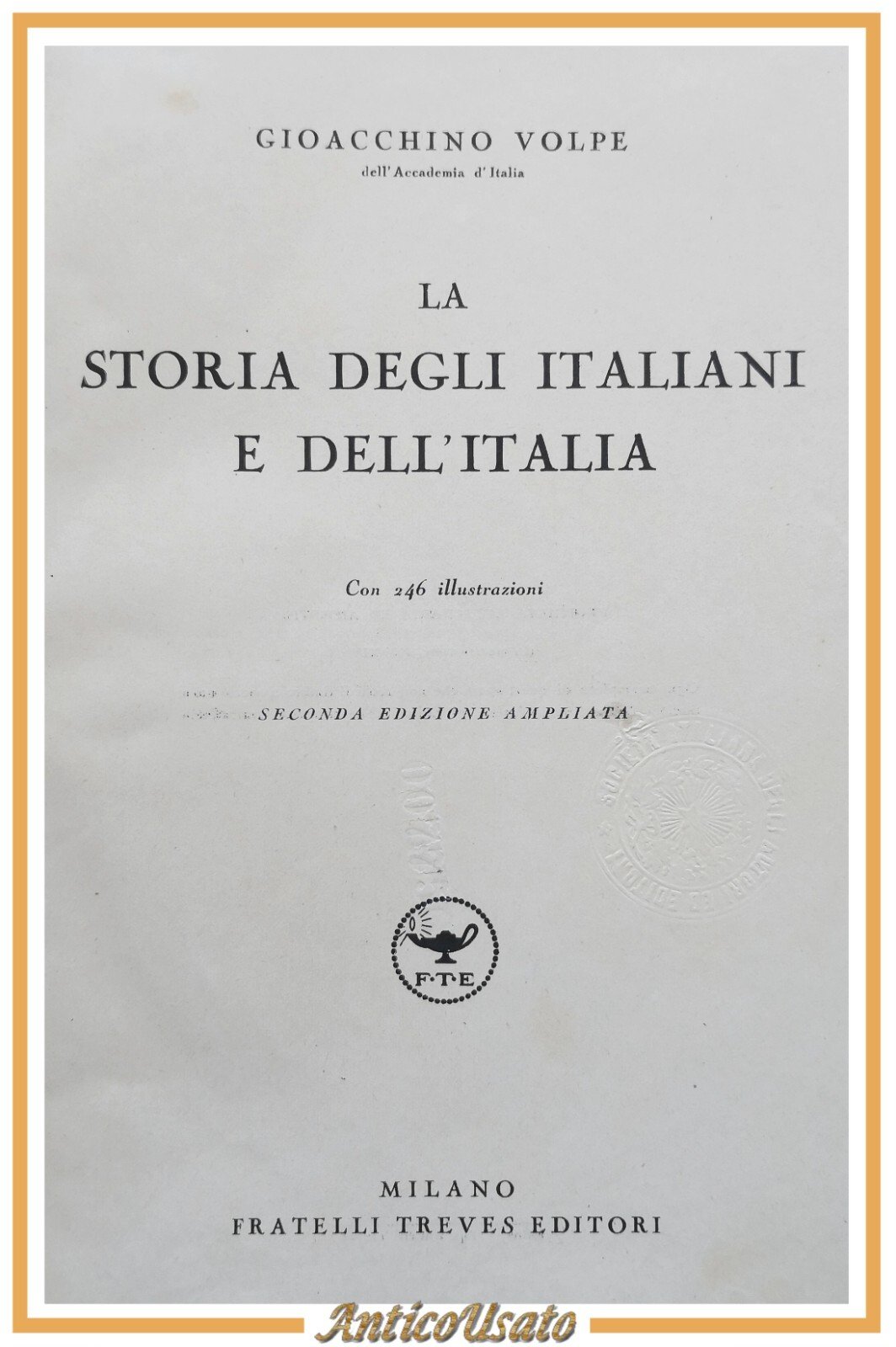 LA STORIA DEGLI ITALIANI E DELL'ITALIA di Gioacchino Volpe 1936 Treves Libro su