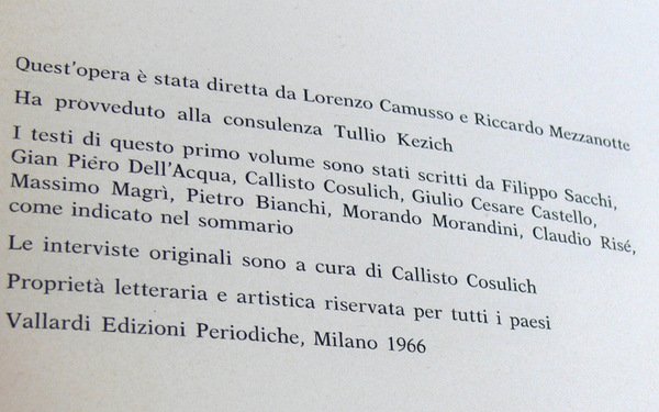 Titolo: La storia del cinema (opera diretta da Lorenzo Camusso e Riccardo Mezzanotte; consulenza Tullio Kezich; interviste originali a cura di Callisto Cosulich); 1440 pagine.