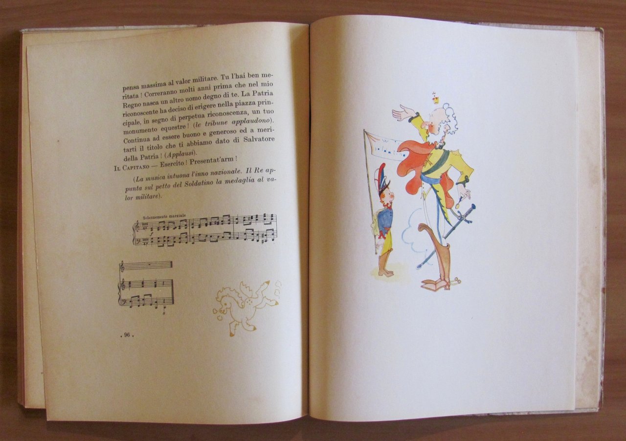 Illustrazioni in tinta, a quasi tutte le pagine, e belle tavole a colori f.t. di Carlo Bartolini Salimbeni. Editori Bemporad & Figlio - Firenze, Gennaio 1936. Cartonato editoriale con minima polvere del tempo. Lievi fioriture del tempo al solo margine esterno di qualche pagina. 20,5x27; pp.101. Raro e in Buonissimo stato. , Molto buono (Very Good)
