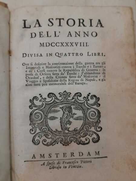 LA STORIA DELL'ANNO MDCCXXXVIII DIVISA IN QUATTRO LIBRI
