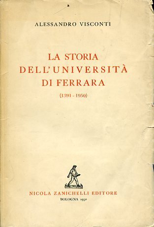 In-8°, pp. X, (2), 238, brossura editoriale con titolo in rosso e nero e velina protettiva. Decine di tavv. in b.n. f.t. Ottimo esemplare. Prima edizione. Eccellente ricostruzione della storia dell'ateneo ferrarese, degli ambienti umanistici e della vita studentesca dal Medioevo al XX secolo.
