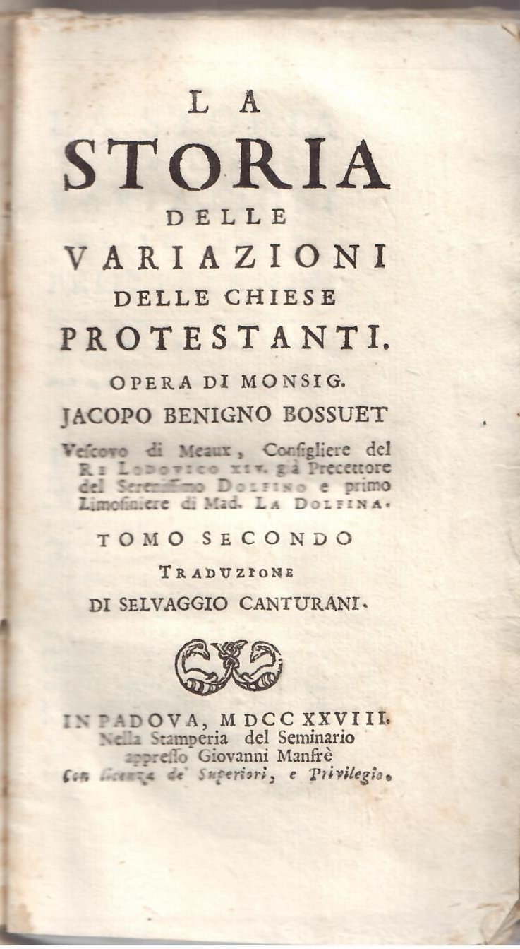 LA STORIA DELLE VARIAZIONI DELLE CHIESE PROTESTANTI - OPERA DI MONSIG. JACOPO BENIGNO BOSSUET