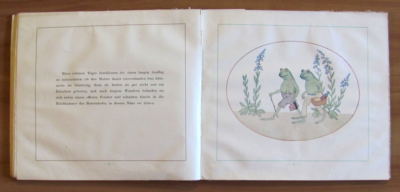 Simpatiche tavole a colori f.t. illustrate dal Principe Roman di Russia. Editore Carabba - Lanciano, 1934. Testo in 4 lingue: Italiano, Francese, Inglese e Tedesco. Cartonato editoriale con dorso in tela con lievi abrasioni ai margini delle copertine e due leggeri graffi in retrocopertina. Cucitura della cerniera anteriore della sola copertina leggermente allentata ma libro perfettamente solido e legato. Lievissima ondulazione delle pagine. 26x23; pp.83. Raro e in Buonissimo stato. , Molto buono (Very Good)