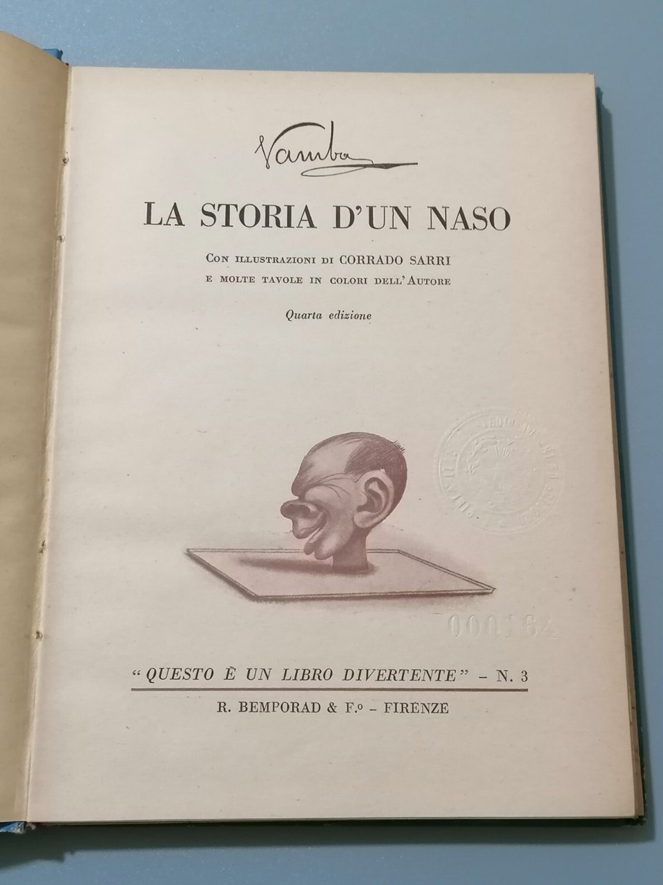La storia di un naso. Questo è un libro divertentedi VambaEditore: Bemporad Data di Pubblicazione: 1935 Illustrazioni: Corrado Sarri Pagine: 164 + note Formato: cartonato Descrizione Rara edizione cartonata del 1935 con illustrazioni di Corrado Sarri Condizioni del libro Buone condizioni compatibilmente con il tenue imbrunimento e i piccoli segni del tempo tipici dell'età