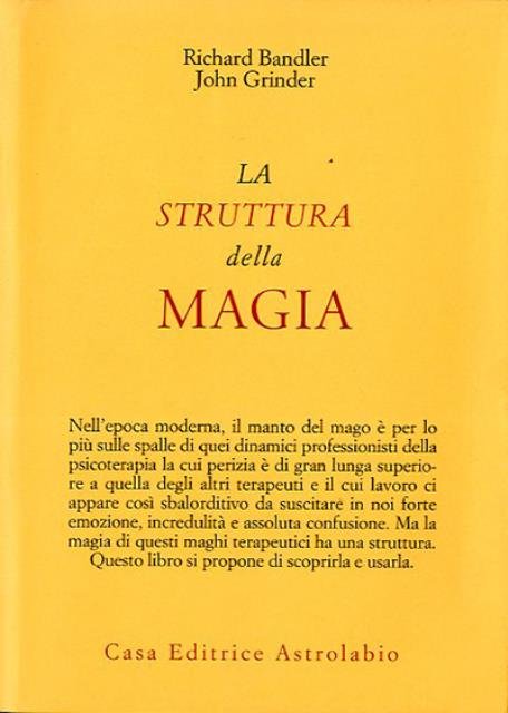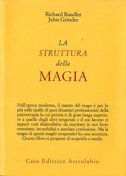Rist. 412 p. ; 21 x 15 cm. Psiche e coscienza. Collana di testi e documenti per lo studio della psicologia del profondo. Nell'epoca moderna, il manto del mago è per lo più sulle spalle di quei dinamici professionisti della psicoterapia la cui perizia è di gran lunga superiore a quella degli altri terapeuti e il cui lavoro ci appare così sbalorditivo da suscitare in noi forte emozione, incredulità e assoluta confusione. Ma la magia di questi maghi terapeuti ha una struttura, questo libro si propone di scoprirla e usarla. Titolo originale dell'opera: «The structure of magic». Traduzione di Augusto Menzio. Brossura editoriale, coperta in cartoncino flessibile con titolo impresso al piatto e al dorso. Sovraccoperta in carta colorata. Codice libreria 7731.