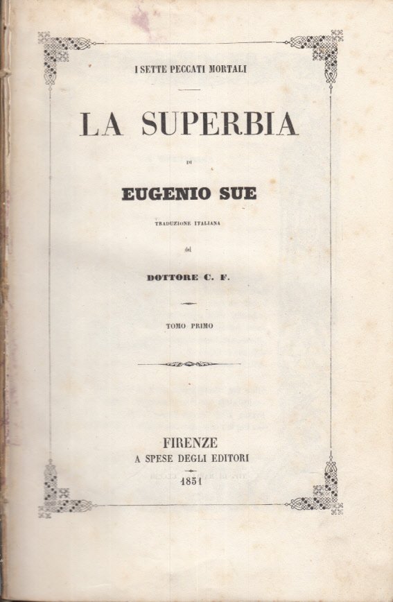In-8 (Cm 23 x 15), pp. 393, legatura mz pergamena con titoli in oro al dorso. testo entro cornice illustrata, alcuni capilettera illustrati. Il solo tomo Primo. Qualche ingiallitura sparsa, piccolo alone angolo basso interno di poche pagine. Spellatura al piatto anteriore. BUONO