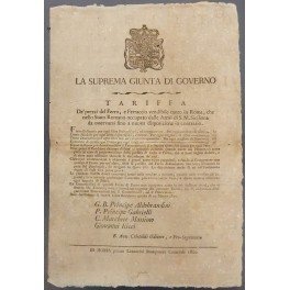 La suprema giunta di governo. Tariffa de' prezzi del Ferro e Ferraccio vendibile tanto in Roma, che nello Stato Romano occupato dalle Armi di S. M. Siciliana da osservarsi fino a nuova disposizione in contrario
