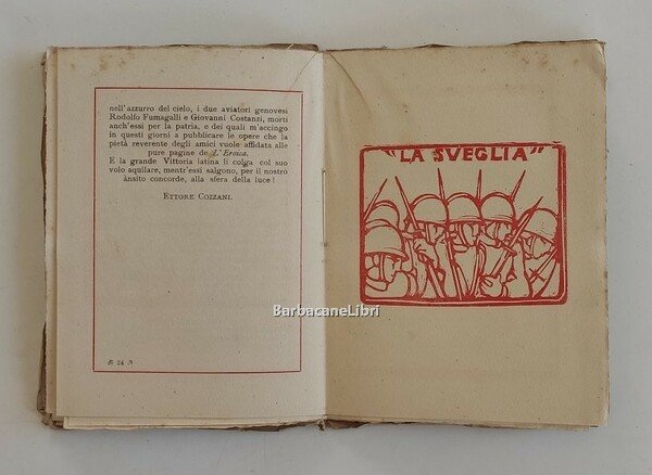 Stato di conservazione: BUONO, copertina ingiallita e un po' sciupata ai margini, segno di piegatura al piatto ant., qualche fioritura, interno in ordine. Collana: I gioielli de L'Eroica. Introduzione di Ettore Cozzani. Xilografie di Mantelli.