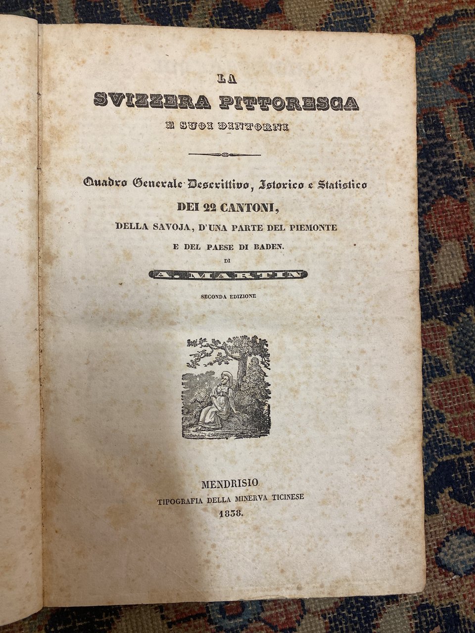 In -4, pp. 296, (2), testo su 2 colonne e 70 finissime tavv. incisioni in rame f.t. con 114 composizioni (vedute e costumi) a mezza pag. e 13 vedute a piena pagina. Legatura mezzatela non originale con piatti marmorizzati, titolo oro al dorso, fioriture sparse. Tagli spruzzati di blu. Seconda edizione come specificato nel frontespizio.