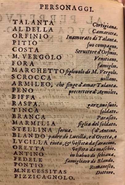 La Talanta. Comedia, del divin Pietro Aretino. Composta a petitione de magnanimi Signori Sempiterni, e recitata da le lor proprie Magnificentie, con mirabile superbia d’apparato