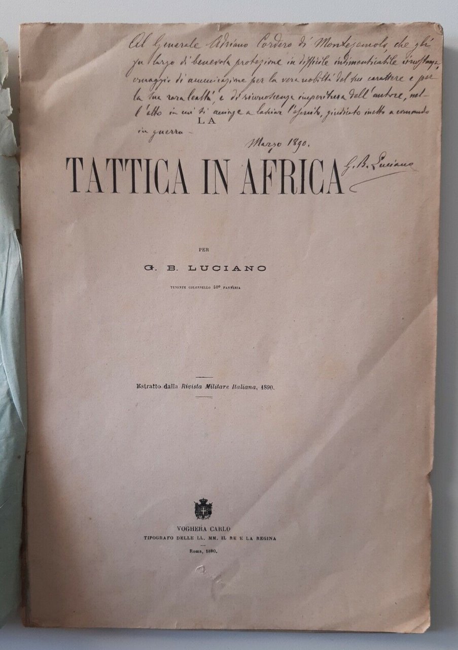 LA TATTICA IN AFRICA PER G.B. LUCIANO CARLO VOGHERA 1890
