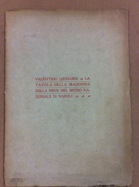LA TAVOLA DELLA MADONNA DELLA NEVE NEL MUSEO NAZIONALE DI NAPOLI. - Edizione di XXV esemplari. Nozze Elisa Bindi-Sergardi Emilio Bonci-Casuccini.