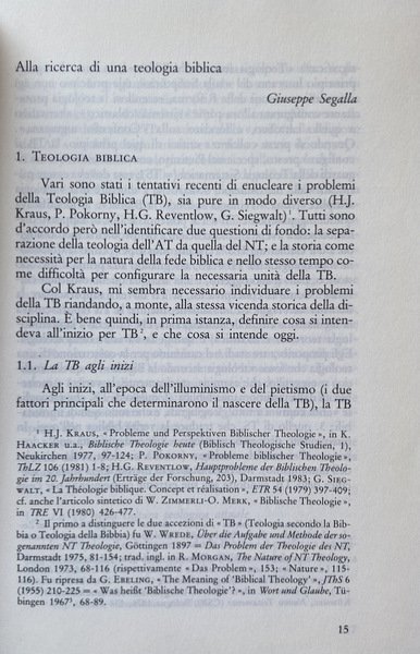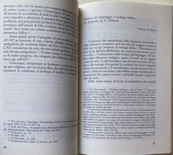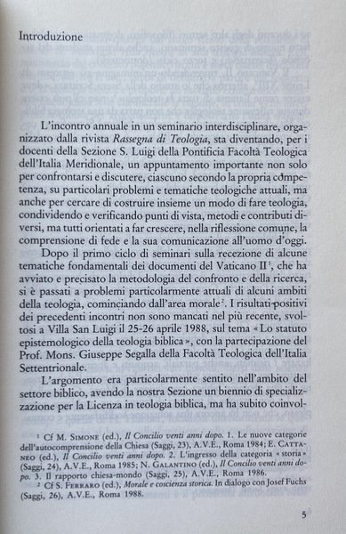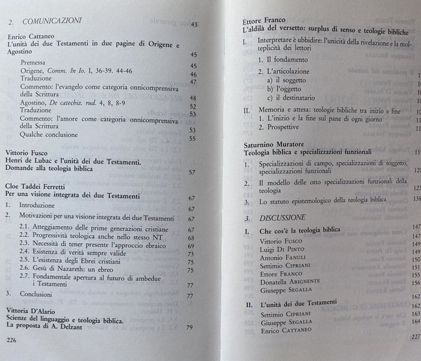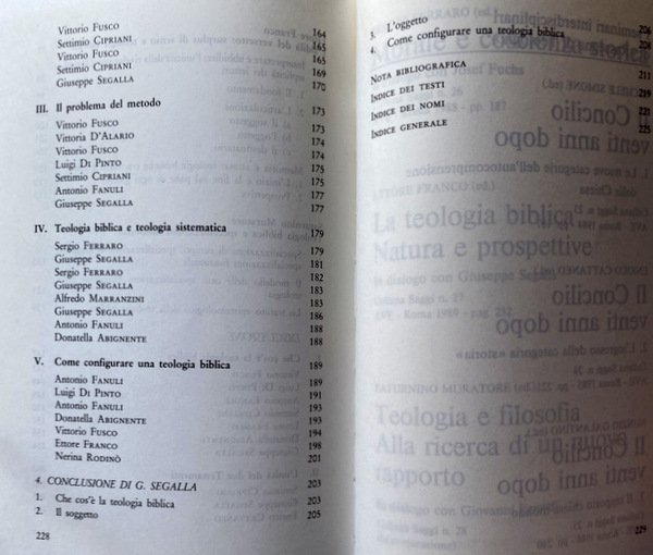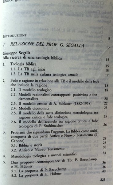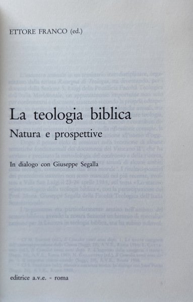LA TEOLOGIA BIBLICA. NATURA E PROSPETTIVE. IN DIALOGO CON GIUSEPPE SEGALLA. INTERVENTI DI: ENRICO CATTANEO, VITTORIO FUSCO, CLOE TADDEI FERRETTI, VITTORIA D'ALARIO, ETTORE FRANCO, SATURNINO MURATORE, LUIGI DI PINTO, ANTONIO FANULI, SETTIMIO CIPRIANI, DONATELLA ABIGNENTE