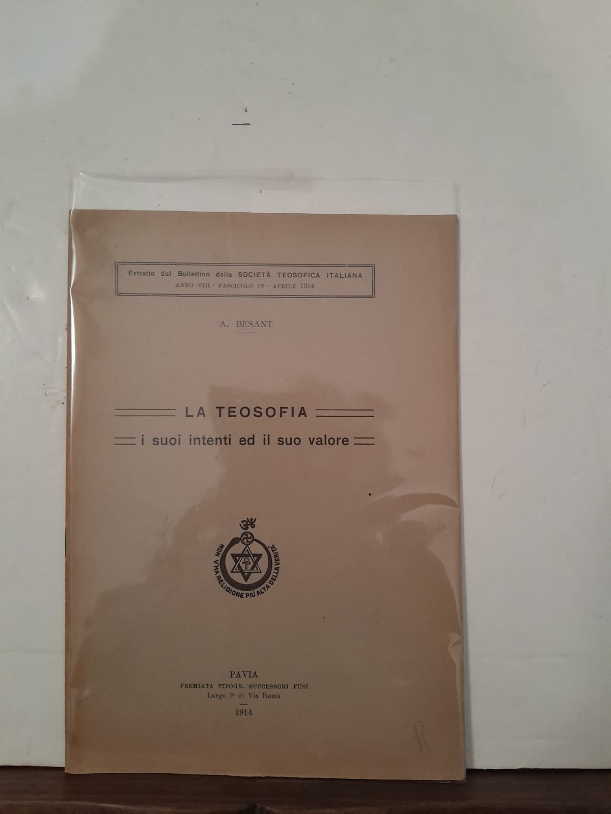 Estrattp del Bollettino della Società Teosofica Italiana Anno VIII Fascicolo IV aprile 1914