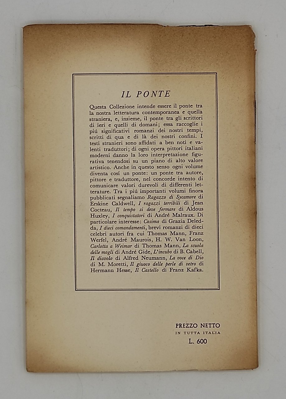 Brunitura in copertina con pezzettini mancanti (vedi foto). Pagine molto buone.