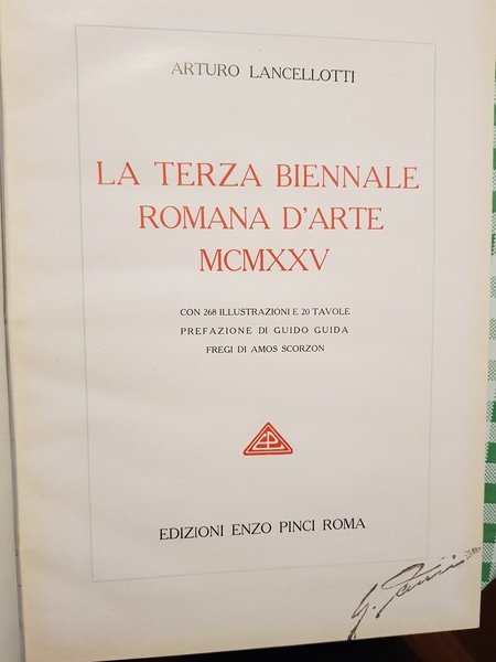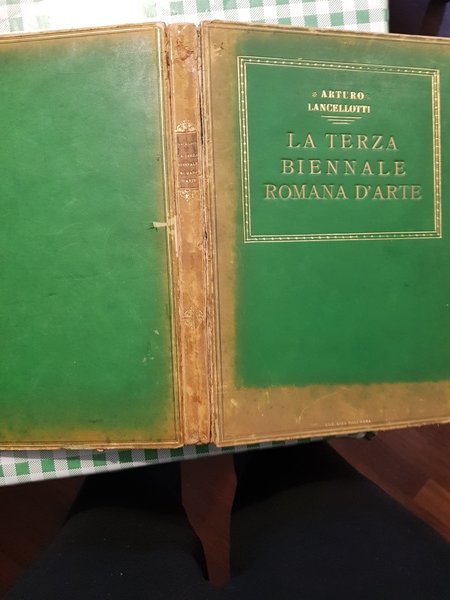 Terza Biennale Romana d'Arte, 1925, prefazione diGuido Guida, fregi di Amos Scorzon, rilegato, similpelle, scritte in oro al piatto, taglio superiore in oro, formato 22x31, pagine 225, con 268 illustrazioni e 20 tavole in nero, copertina sbiadita con tracce d'uso, dorso con mancanze, buone condizioni - 44288