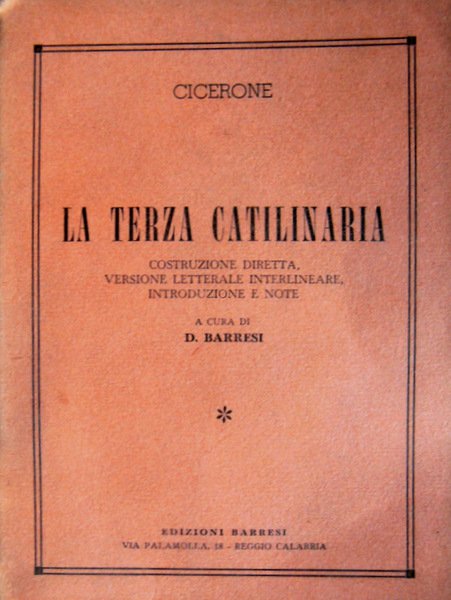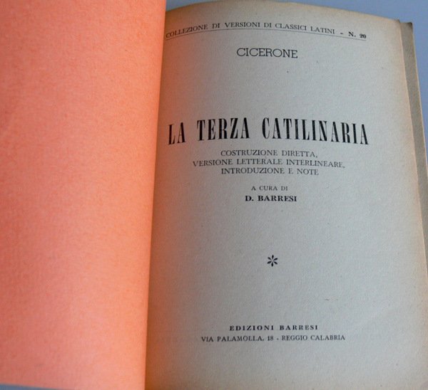 Soggetti: Latino, Traduzioni Latino/italiano, Cicerone, Orazioni, Orationes, Catilinarie, Catilina, Discorsi, Oratio III, Roma, Senato Romano, Versioni latine, Didattica, Libri scolastici vecchi, antichi, Storia romana, Classici latini, Libri Vintage fuori catalogo, Collezionismo, Libri da collezione rari, Grammatica latina, Letture, Orationes in Catilinam, Pompeo, Crasso, Cesare, Congiure, Congiurati, Cornelio Silla, Difesa, Repubblica, Popolo romano, Quousque tandem abutere, Catilina, patientia nostra?, Anni Cinquanta, Linguistica, Liceo classico, Latin, Latin Translations, Cicero, Orations, Orationes, Catilinaries, Catiline, Speeches, Rome, Roman Senate, Latin Versions, Didactics, Old, ancient school books, Roman history, Latin classics, Out of print books, Collectibles, Rare collectible books, Latin grammar, Readings, Pompey, Crassus, Caesar, Congiure, Defense, Republic, Roman people, Fifties, Linguistics, Classical high school