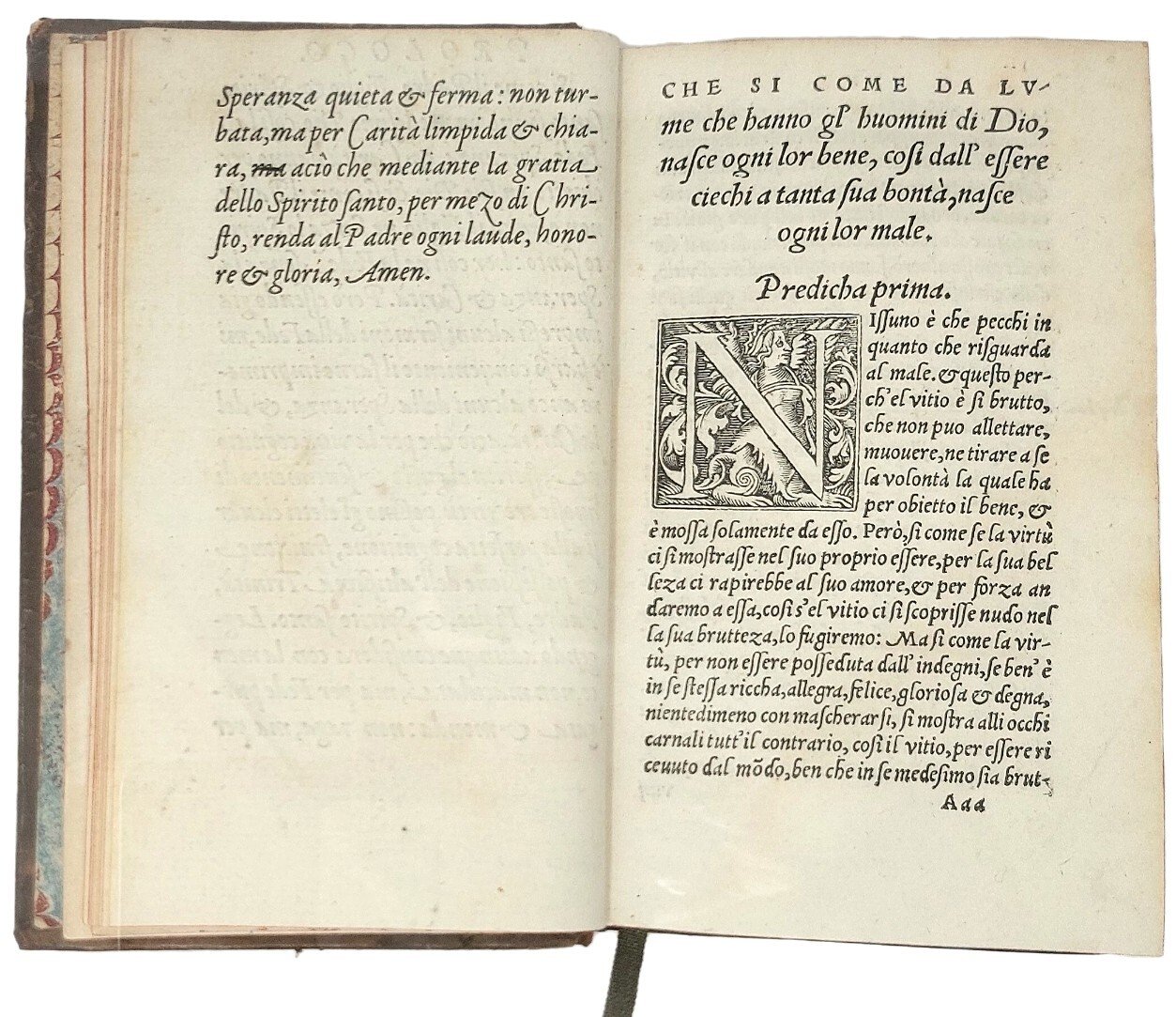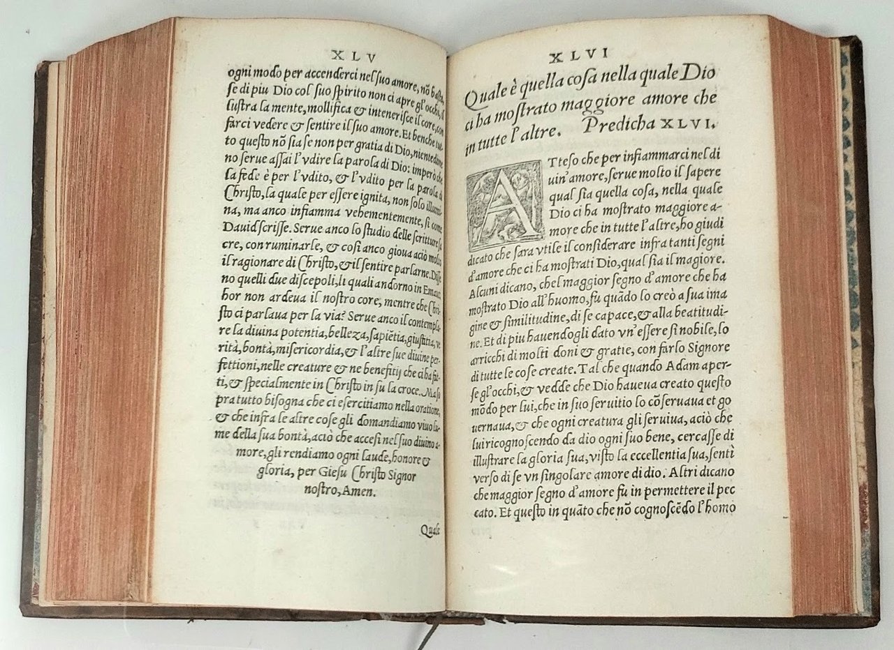 >in-8, (144x91 mm) ff (272). Legatura settecentesca piena pelle, titolo oro su duplice tassello e ricchi fregi al dorso a nervi. Manca la segnatura Ttt che comprende le prediche XLI, XLII, XLIII. Terza parte delle prediche dell'Ochino stampate a Basilea da Pietro Perna. Nel catalogo di Leandro Perini, La vita e i tempi di Pietro Perna, Roma, Edizioni di Storia e Letteratura, 2002, l'opera risulta al n. 7, stampata dal Perna, con ancora la presenza dell'Isingrinus. All'inizio del volume: epistola Alli pii Lettori (probabilmente di mano del Perna); seguono: 79 Prediche e in fine: Testamento. Delle parole che doverebbeno dirsi nell'ultimo nostro testamento. Opera di grande importanza e di notevole rarità, purtroppo mancante della segnatura Ttt.