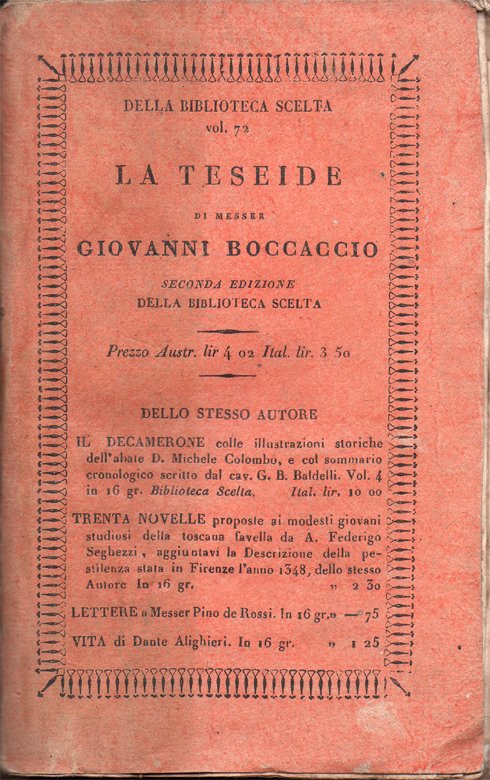La Teseide di Giovanni Boccaccio. Seconda edizione della Biblioteca scelta