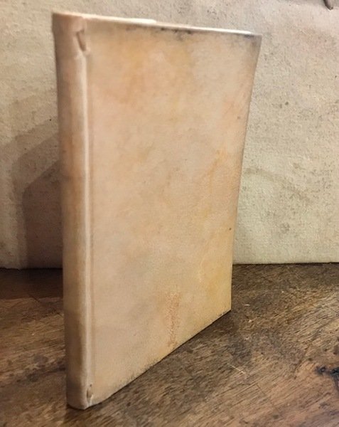 8vo (cm. 15,5), 56 cc. Marca tipografica al frontespizio (Aquila coronata con ali spiegate in cornice figurata). Iniziali xilografiche. Legatura in pergamena rigida. Lievi sporadiche ingialliture, altrimenti esemplare in ottimo stato di conservazione. Edizione originale. Adams, M-286. In Allacci (758) un’edizione del 1578.