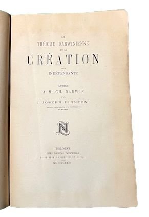 La Theorie Darwinienne et la Creation dite independante, Lettre A. M. Ch. Darwin par J. Joseph Bianconi Ancien Professeur à lUniversite de Bologne,